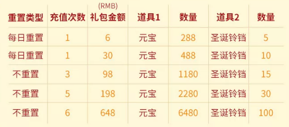 登录第一日:元宝*388,圣诞蜡烛*5,圣诞帽*20