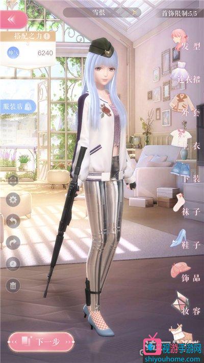 头发:飘逸长发·清泉,上衣:炫目朋克,下装:液态金属,外套:蔷薇之翼,袜子:樱红小格,鞋子:灰蓝记忆,帽子:银鹰,手套:突击队 ,耳饰:信仰救赎,手持物:雪夜之鹰,特殊:重叠映射。