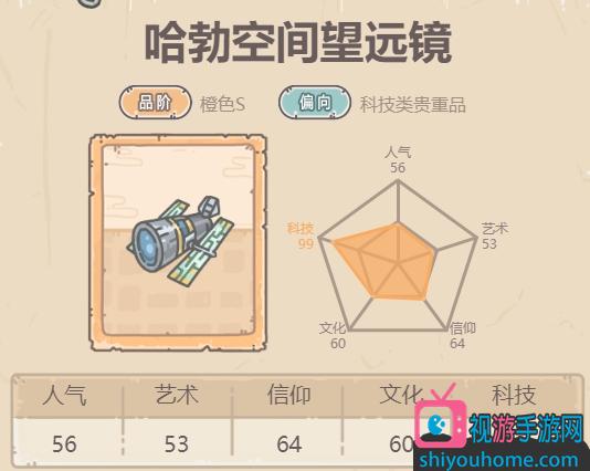 2、哈勃空间望远镜置于米国博物馆,赋予效果:米国探索,获得天使细胞数量+30%;