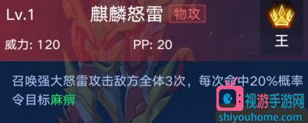 麒麟怒雷:召唤强大怒雷攻击全体3次,每次命中20%概率令目标麻痹