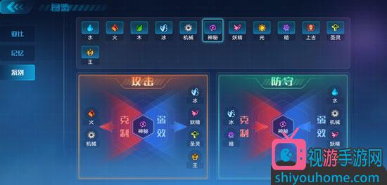 (攻击弱效和防御弱效展示不全,图中攻击弱效未展示的系别是神秘系和暗系,防御弱效未展示的系别是机械系和圣灵系)