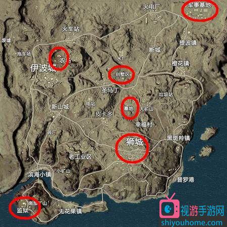 三、沙漠图:监狱、军事基地、别墅、狮城、墓地附近野点、农场。