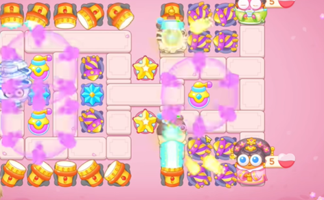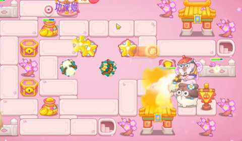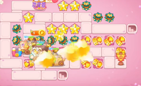 2、接着往左侧放置鱼骨头和磁铁,上方放置星星并升级所有炮台增强火力。