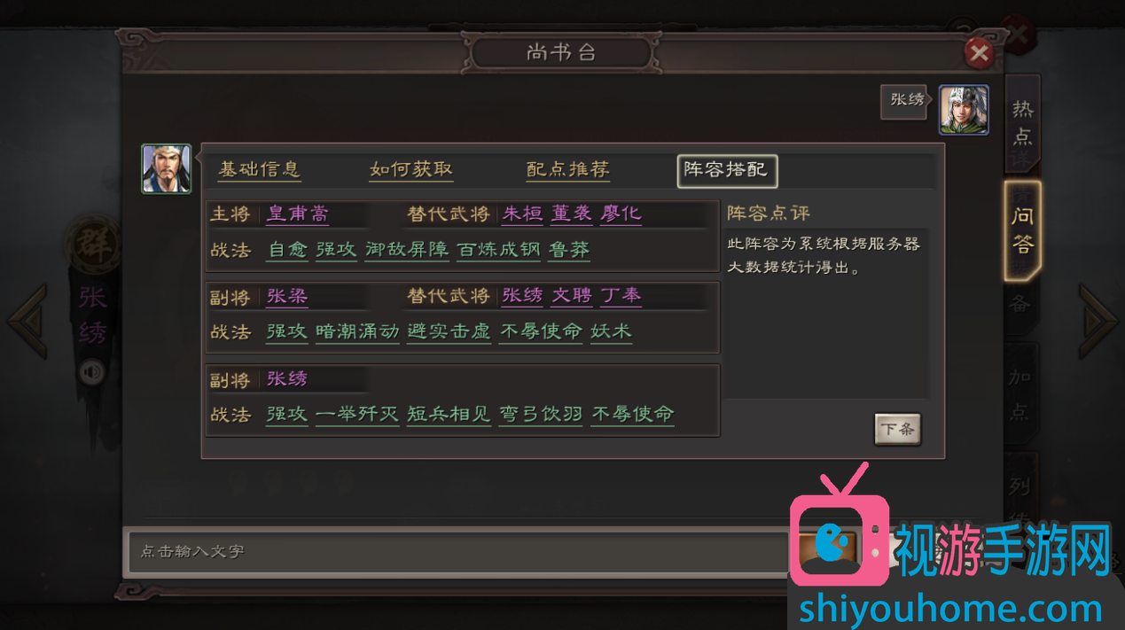 张绣+张梁+皇甫嵩组成爆头群枪队伍