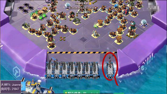 4、第二波先把红圈中的火箭发射器给炸掉,就可以下兵了。下兵方式和第一波一样,最右边下一船胖子