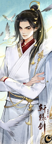 龙武军“清羽凭风”霓裳,犹似一只利刃孤鸟,踏剑随风而至。白羽郎将一袭墨白缎袍,如山如河器宇轩昂,剑眉星眸灵动璀璨,一片鸿羽倒挂雄肩,更添凛冽脱俗。