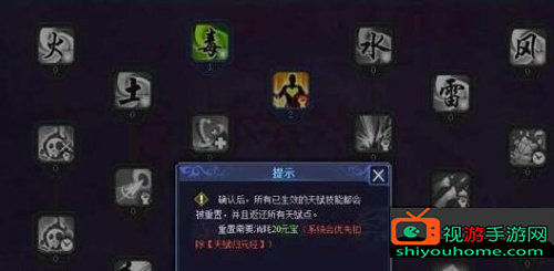 如果你对自己的天赋点设计不满意,可以对已经点好的天赋进行还原处理。只需要消耗一本天赋归元经,或者20个元宝,就能进行重置还原了。还原之后,所有的天赋清零,并且重新得到所有已经投入的天赋点数,就可以根据自己的需求,再一次搭配出一套符合心意的天赋体系了。