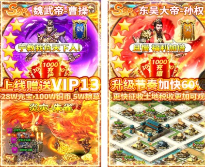 乱斗三国(返10亿送充)是款上线赠送VIP13,28W元宝,100W铜币,5W粮草的三国策略变态版手游!