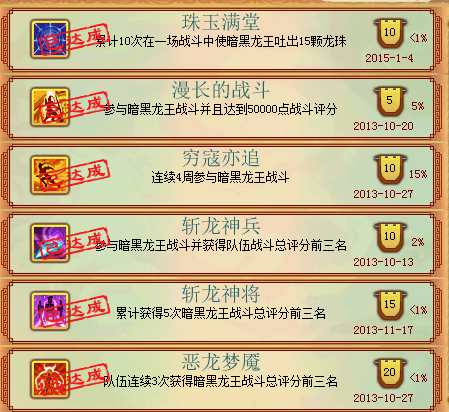 最后活动评分排名的队伍,还能得到额外的奖励:第一珍兽灵;第二五宝;第三二级护符重置丹;评分标准目测是输出总量。P.S:目前此活动还没出成就。