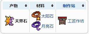 天界石是在困难模式下,石巨人之后,在工匠作坊由太阳石和月亮石制作合成的配饰。