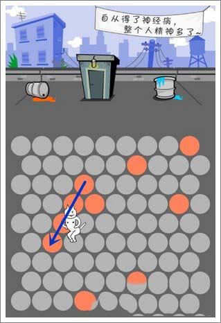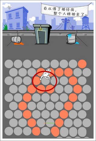 如图所示,这时要尽快把神经猫困住,直到他不能移动了,才能获胜。所以这时就要贴着神经猫点出红点,让他无处可逃。