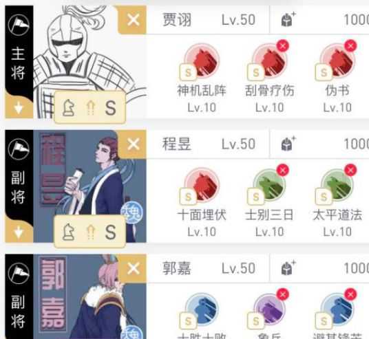 小编列出的第一套阵容中(程昱主将),爆发极高但是程昱偶尔演戏,因此胜率不会和你想的那样稳定。这一套中,贾诩的定位很明确就是打控制(为了说明贾诩更加适合打控制我楼下给出一张图完全可以说明原因),补少量输出,特别是伪书这个技能后半段输出完全不受锋矢阵的影响。这套阵容我更加推荐。