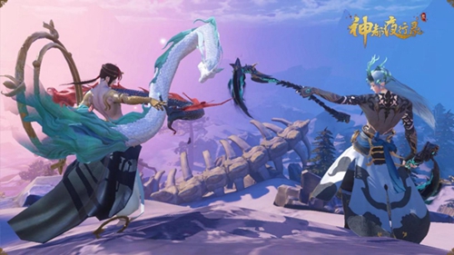 来自琴心雪境服务器的降妖师“败天下名锋”的作品中,应龙与祖龙剑拔弩张,似乎下一秒就要开战,远方的龙骨荒原仿佛在暗示着龙王之战的惨烈。