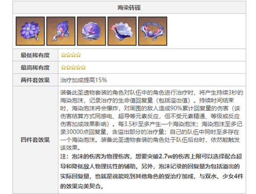 算是专属圣遗物套装了,水母在3秒内能治疗全队两次,加上大招普攻带来的治疗量,可以轻松吃满四件套效果。稳定提升5000+的DPS,心海带海染套直接起飞。