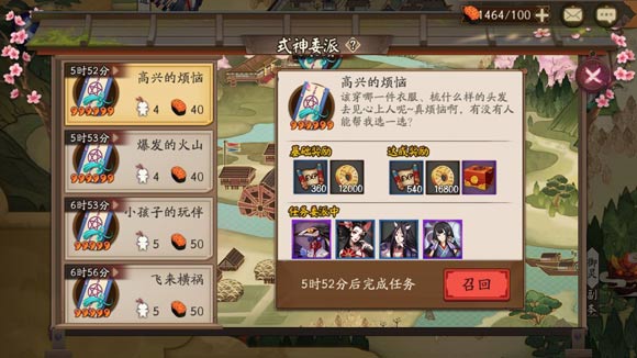 如果希望早日合成心仪的SSR,可以做这个任务,甚至专门养几只觉醒4星左右的推荐式神。
