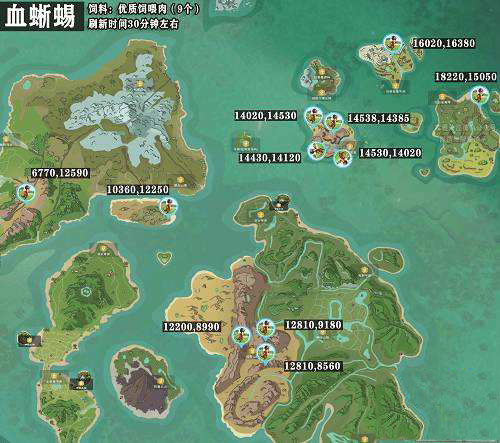 血蜥蜴饲料:优质饲喂肉(9个),其刷新时间为30分钟左右。