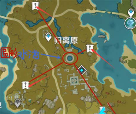 总而言之,奇怪的圆盘就对称分布在归离原,四个圆盘两两连线,就能找到最后一个机关。
