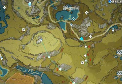 沿着图示路线,靠着山走,就能收集到所有点位,一共11个(最后一个点位有两个)。