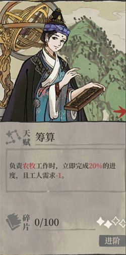 在负责农牧工作时。可以立即完成20%的进度,工人的需求减少1。