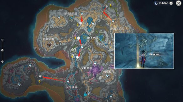 1. 从巨渊主矿区传送点过来,往最下面走,在木梯口右边石壁上。