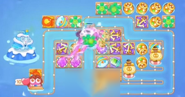 4、最后确保拿到全清,我们只需要继续沿线放置炮台增加伤害就行了,法阵上面最好是放冰锥或者乌龟,这样间歇攻击的炮台。