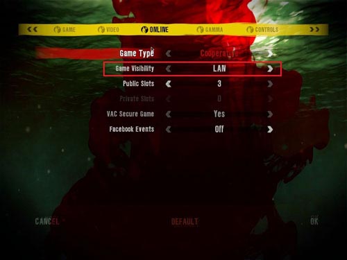 然后运行游戏。并在option中的online里把Game Visibility调成LAN。