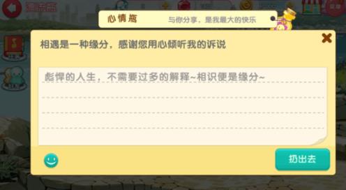 当进入扔瓶子的界面之后,在信件中写入你想说的话语,再点击扔出去,系统就会随机在几种信纸中选择一样,放入到漂流瓶中帮你扔出去。