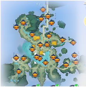 小瀑布上的酒坛(古怪的酒坛),点击解开谜题(需要双人完成两种相同图案消消乐,建议拍照)即可获取奖励。