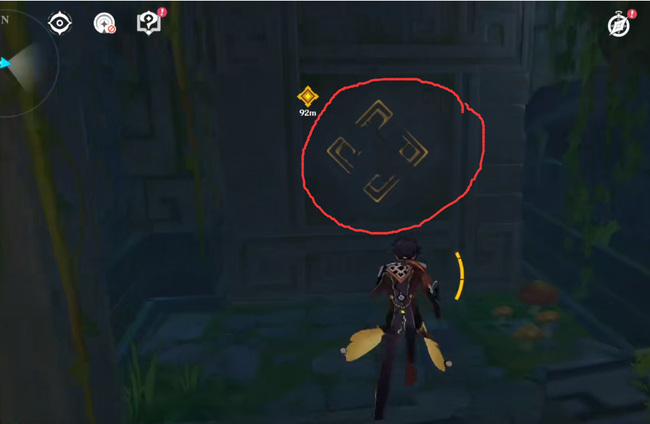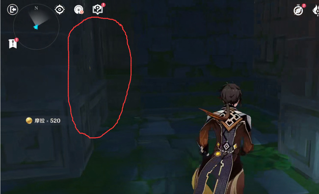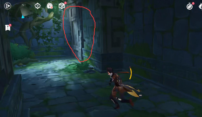 8.接下来触摸如图后方的石壁一次。