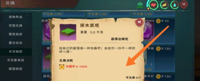 创造与魔法游戏中,地基皮肤都是通过玩家在商店购买或兑换获得的,如下图所示,绿色原木地基皮肤就可以在天空商店消耗乐园币获取到。