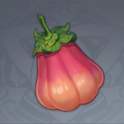墩墩桃原型的莲雾果。在游戏《原神》中墩墩桃是林中灌木结出的果实,其用途是作为一种食材,可以制作须弥地区料理,在现实世界中的原型就是莲雾果。