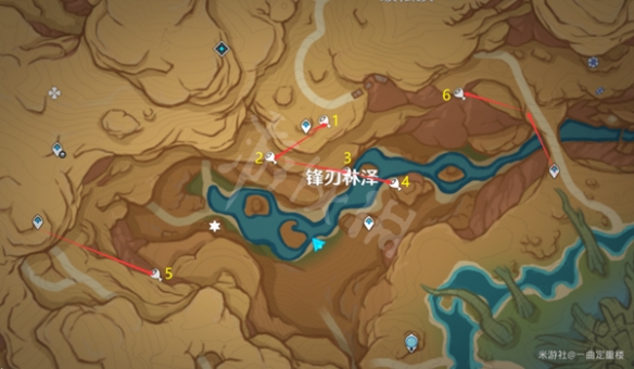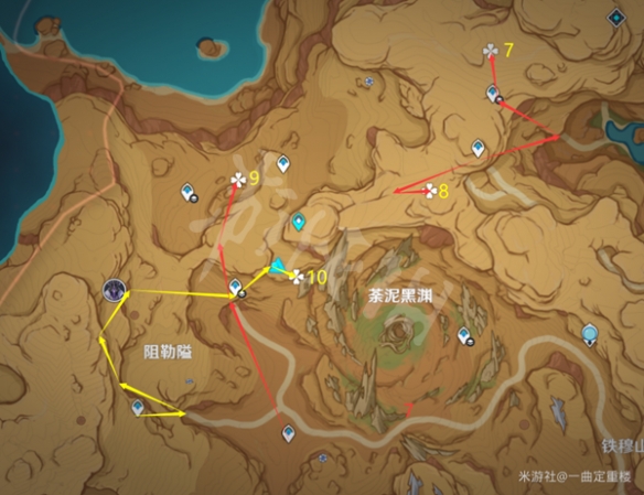 4.下面是四个地下点位的路线图(红7手滑请无视),每完成一处可获得一个宝箱与一个“净光翎”。