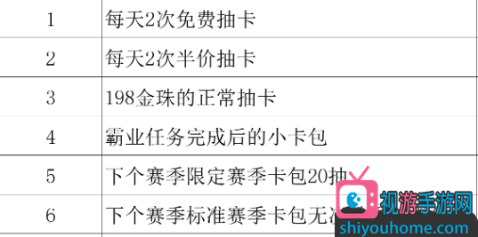如果选择每天抽98的半价卡,一个赛季可以获得最少5个额外的五星卡,运气好更多。如果选择攒8000金珠抽赛季卡包,可以获得2个赛季武将。