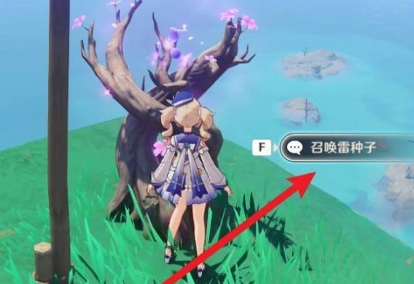 2、来到山脚下,点击召唤雷种子。