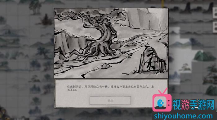 我们来到所在位置,正式触发了不归河奇遇。剧情显示我们来到了河边,河边立着一块“不归”的碑文。接着有三个选择供大家选择。如果选择“在此处修炼”的话,会得到一定的修为,并且触发树精boss战,并且会获得一本紫色品质的金丹期功法(随机生成,可SL)。如果选择”急着赶路”,那么就等于不触发不归河奇遇。