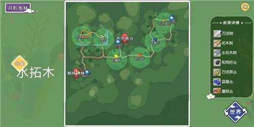 水拓木之所以难找,就是因为下雨天气难刷,不清楚其刷新机制的话,就算走几圈地图都无法找到。建议大家在月影密林探索的时候多多注意天气,只要是下雨了第一反应就是收水拓木,形成条件反射之后就不会缺这个资源。