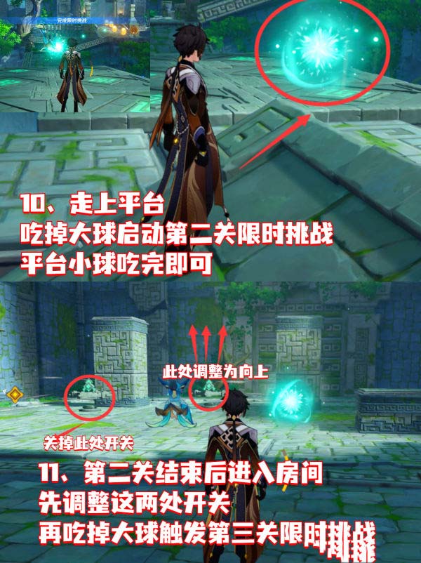 1.原神循风挑战第二关通关步骤如下,记得尽量先关闭风场再调整方向。
