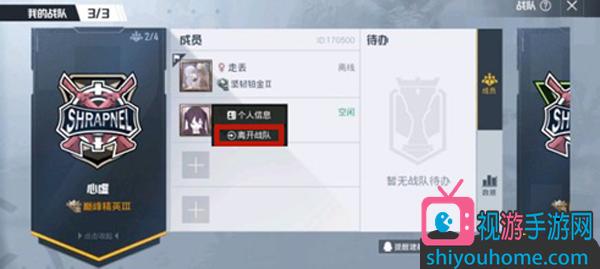 2、点击自己的头像后就会看到【离开战队】的选项,点击后即可退出当前的战队;