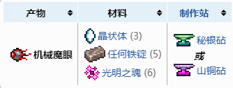 2.制作机械魔眼需要三个晶状体,6个光明之魂,还有5个铁锭。