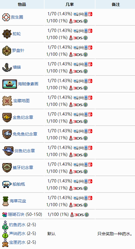如果没能得到特殊奖励,则会得到以下奖励中的任意一件,不分先后。几率不受运气、已完成任务数量、和渔夫的快乐程度的影响。