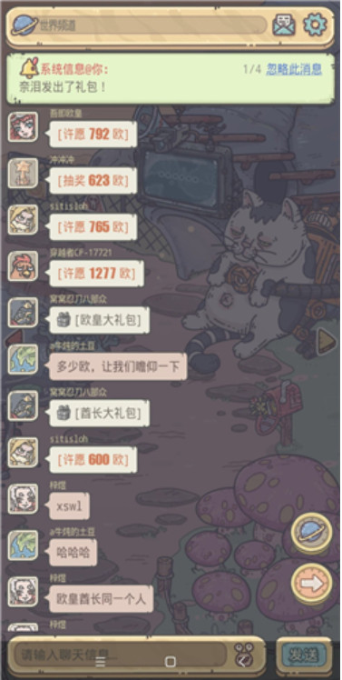 言归正传,非酋礼包的获得方法就是蹲聊天频道,只要你的手速足够快,就可以轻松入手。对于手速慢的玩家而言,可能游戏毕业都见不到酋长大礼包,因为没有非过。