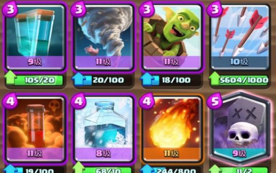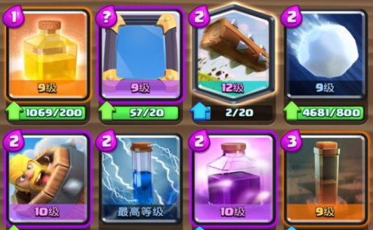 接下来给大家说一下中等费用法术,也就是五费以下的法术。地震法术:嗯,公主塔非建筑,减速加上挠痒痒。可以说这张法术卡完全是针对建筑卡牌,三轮的伤害还是可以的,不过其他嘛,就没啥可说的了。克隆法术:一变二瞬间翻倍,血量虽低伤害高。虽然我们的克隆法术复制出来的单位只有一点点血量,不过伤害还是没什么太大的变化的,在对面没有防守牌的时候,效果还是很大的。飓风法术:一群搂一起,速度很重要。这张法术卡牌可以说是强制位移的卡牌,用起来还是很靠技术的。飞桶:三个哥布林整装待发。玩飞桶还是得需要心机的,毕竟也叫心机桶嘛。箭雨:123,脆皮没。虽然攻击分成了三波,但是伤害还是增加的,可以说是脆皮的克星。毒药:进攻赚来防守亏,慢慢效果你血量。总的来说毒药用来进攻的效果还是很不错的,对面的军团很难发挥作用了。冰冻:冰冻加伤害,四费还是真不少。主要还是看心机,第一次用好了伤害不小。火球:燃烧不是持续伤害,击退也有很好效果。伤害不低还带击退,用来防御气球兵只需要掌握好时机。