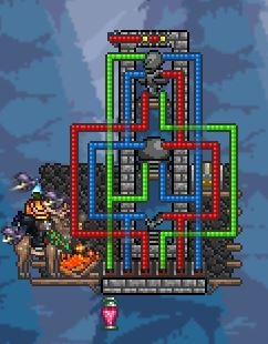 首先启动电路。注意,雕像在附近已有三个怪的情况下不会再出怪,所以先迅速连续启动三个定时器,过一两秒后再启动其余三个,如此可让雕像出怪的速度最大化。