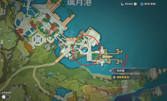 1、在游戏中,打开地图,我们选择前往璃月港的铁匠铺。
