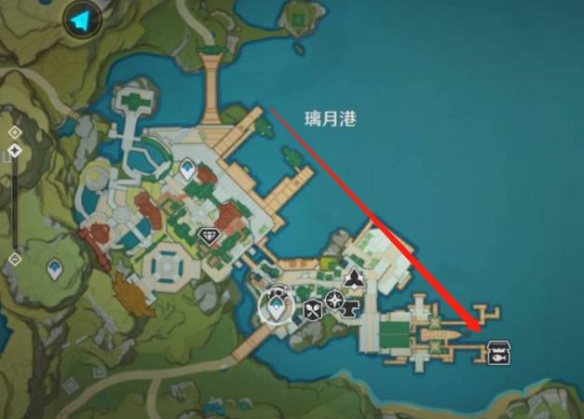 1、首先我们找到璃月港,点击锚点传送过去,然后去图中标记的地方。