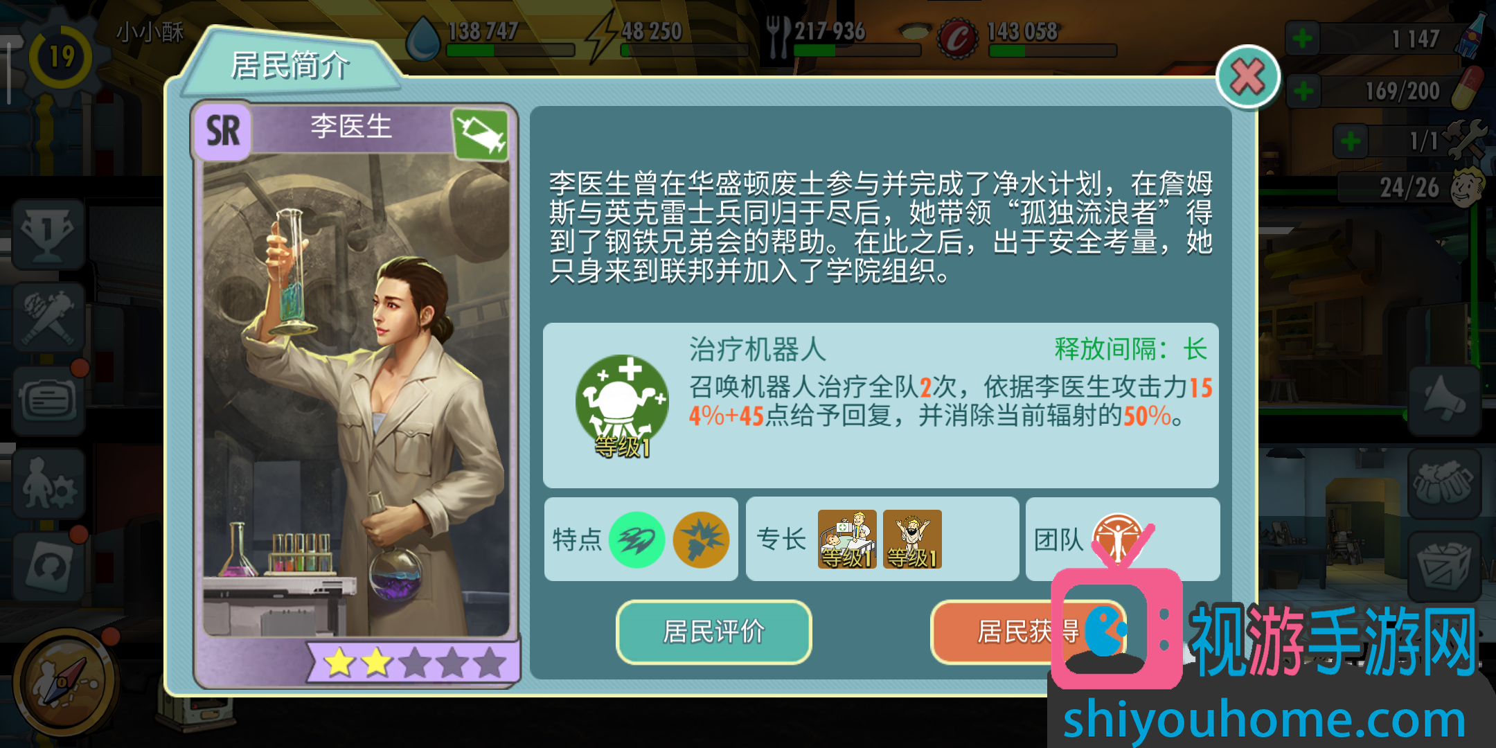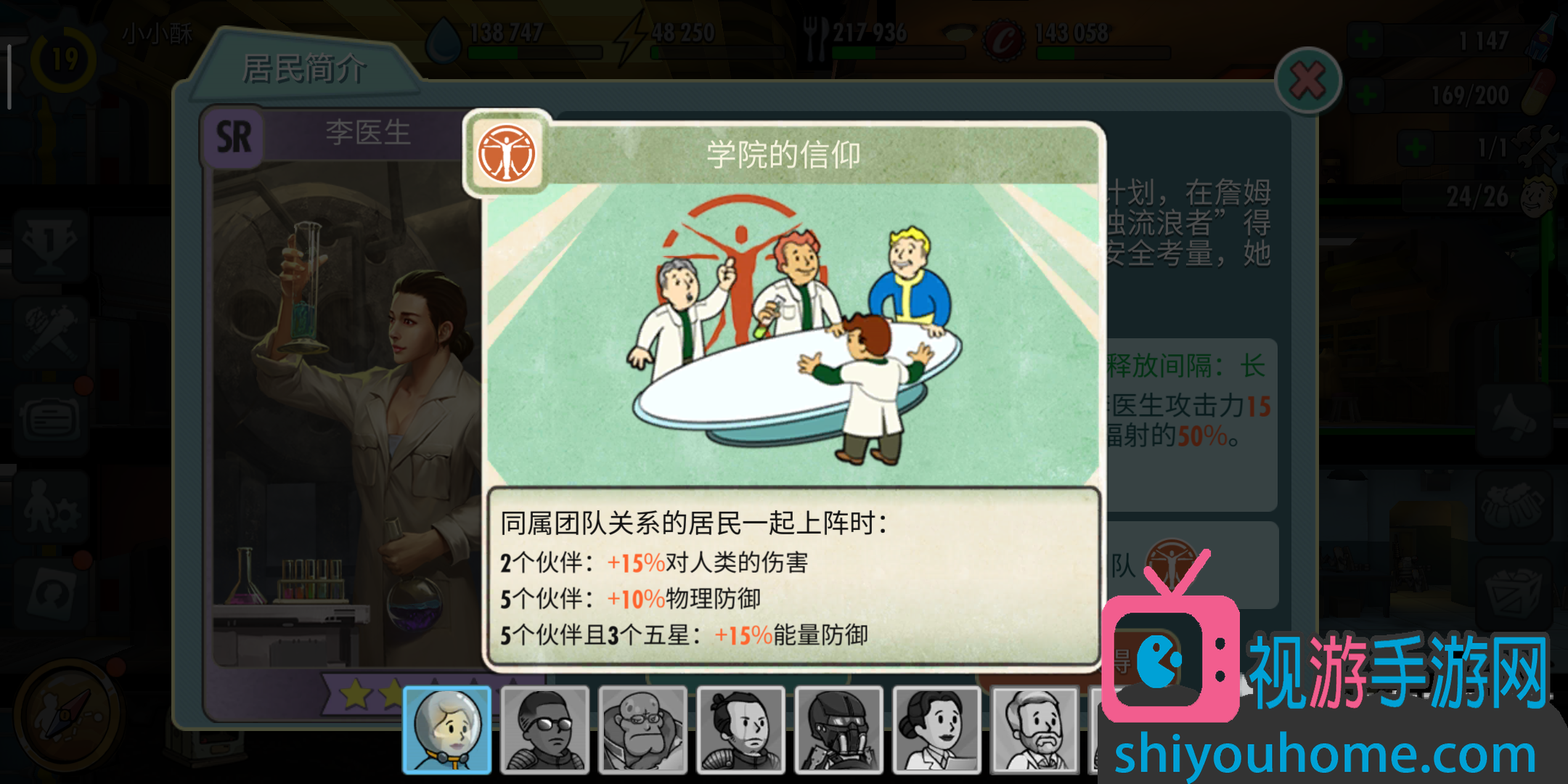 辐射避难所ol中的大部分居民都有自己的背景故事,而李医生也不例外,李医生属于联邦学院成员,和同属团队成员战斗可以享受额外加成。并且,从中就可以知道获得李医生的第三种方法。