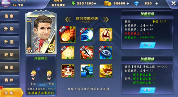 更进一步的培养,则包括意志和技能,只有当球员达到一定等级时,才会解锁这两个功能,分别能够为球员提供意志力加成以及技能效果,让球员在球场上发挥出更强的技艺。