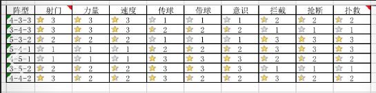 从图中可以看出,每个阵型对球员属性的影响存在明显的差异,因此在安排球员时,要提前考虑好要使用的阵型,扬长避短,才能将阵型与球员两者的价值发挥到极致。