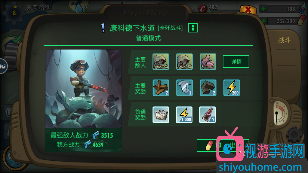 选择玩家想要进行任务的角色,确定进入任务的具体详情。在河里玩家能够看到此次任务的敌人数量,有可能存在的危险,推荐的攻略战斗力数值以及玩家自己的战斗力数值,等等一系列数据。