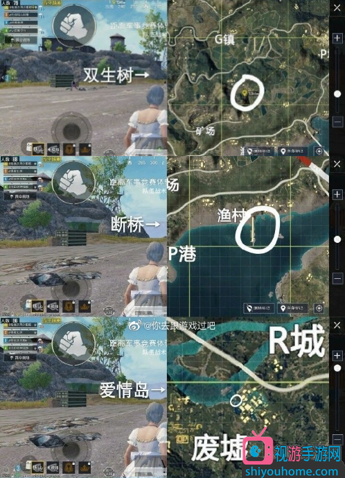爱心岛:在R城左下角的水城,适合两个人站上去拍照打卡。任何形状类似爱心的东西,都能被有爱的情侣玩家找到,老喵经过这里一百次都没发现过。